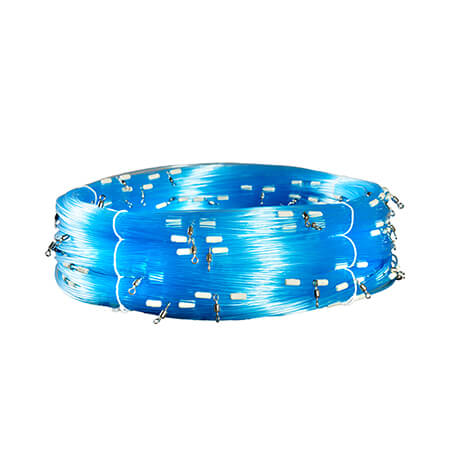 A linha giratória é um pré-linha principal obstruída, com giros ajustados em intervalos fixos por demanda. As rolhas tradicionais em uma linha giratória com linha de monofilamento de nylon são feitas com barbante enrolado colado à linha principal, ou com mangas metálicas fixadas como rolhas. Embora sejam amplamente utilizados, a durabilidade e a consistência dessas rolhas feitas manualmente têm sido um problema. Nossa linha giratória foi desenvolvida para resolver esse problema. Com nossa inovadora tecnologia de união de rolhas, rolhas de plástico moldadas são unidas à linha principal de mono nylon por semi-processo automático com força uniforme, para garantir uma ligação consistente sem comprometer a resistência da linha. Os batentes de plástico colados podem suportar até 100 kgf de força de tração. Combinado com força excepcional, alta transparência, & boa resistência à abrasão da nossa linha mono nylon, nossa linha giratória é a solução perfeita para o fundo &lificador; pesca costeira com palangre. Para aqueles que preferem usar encaixes em vez de giratórios, também podemos oferecer a linha somente com rolhas.